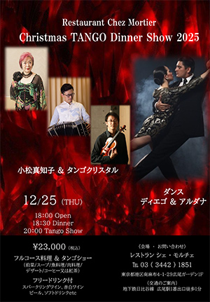 『クリスマス タンゴ ディナーショー 2025 12月25日 開催』 |